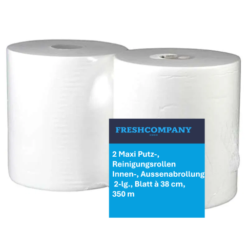 2 Maxi Putz-, Reinigungsrollen Innen-, Aussenabrollung 2-lg., Blatt à 38 cm, 350 m