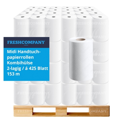 36 x 6 Midi Handtuchpapierrollen, Reinigungsrollen, Kombihülse, 2-lagig, à 425 Blatt, 153 m