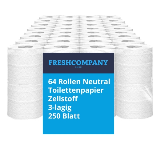 64 Rollen Neutral Toilettenpapier WC-Papier, Zellstoff, 3-lagig, 250 Blatt