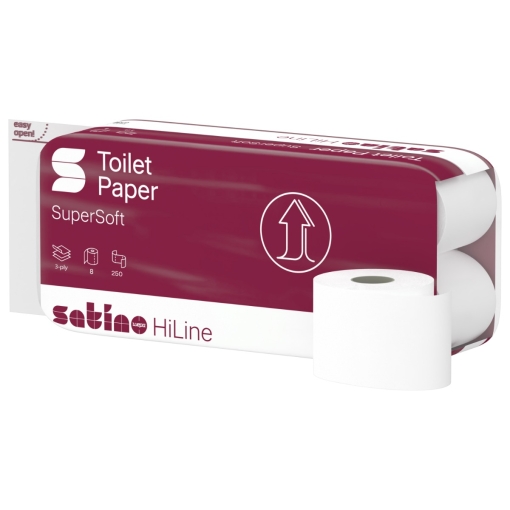 WEPA "Satino HiLine 8x250 3p" Toilettenpapier, 3-lagig, Zellstoff hochweiss, 9,5 x 11cm, 8 x 8 Rollen à 250 Blatt Rollen