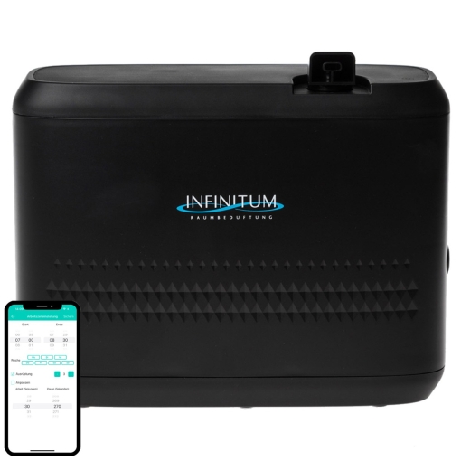- Steuerung per App für individuelle Raumbeduftung: Wochentag / 5 Tagesprogramme / 10 Intensitätsstufen
