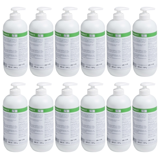 Hand Desinfect E ist ein effektives, alkoholisches Händedesinfektionsmittel. Wirksam gegen Bakterien, Pilze und Viren. Dank seiner guten Hautverträglichkeit und der verlässlichen Wirkung ist es ein beliebtes und vielseitig einsetzbares Desinfektionsmittel für die Hände. Besonders geeignet ist es für den Einsatz im medizinischen Bereich (Krankenhäuser, Kliniken, Arztpraxen, Physiotherapie), Haushalt, Lebensmittelbereich, in der Gastronomie, Hotellerie, Krankenpflege, Industrie und in öffentlichen Einrichtungen, denn es wirkt sehr schnell und auch langanhaltend. Das Händedesinfektionsmittel Hand Desinfect E ist ein Schweizer Produkt.